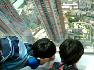 調査の対象をさらに広げ、東京の都市開発の経緯について勉強した後、あたらしいまちのかたちとして、超高層オフィス・住宅のある六本木ヒルズを見学に行きました。子供たちは近代的な六本木ヒルズに感激する一方、昔ながらの町並みの麻布十番周辺にも居心地の良さを感じとっていたようです。 |