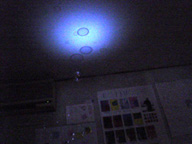 光を見たことがある?そう言われると、あるような‥ないような‥。たとえばお風呂に入ったときの湯気、そこに光が当たったとき、光が見えたような気がする‥。お風呂の湯気をドライアイスの煙に置き換えて実験です。ふわりと煙を浮かせると、懐中電灯から三角に広がっていく光を発見。「わー見えたー!」 |