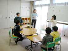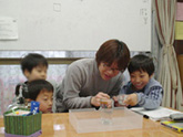 | (体験「地震・煙」) 阪神大震災の写真を見たり、実際に被害にあったナビゲーターの話を聞いて地震のおそろしさについて教室で学習したあと、地震や火事がおきたらどうしたらよいか、立川の防災館に行って体験学習をしました。もしも地震が起きたらという映画を見ました。地震の映像に合わせ、座っている椅子が揺れて、一部で「こわい〜!」という声があがりました。地震体験コーナーでは震度5の揺れの中、1人がガスコンロの火を消し1人が避難路を確保して、全員で頭を隠しテーブルの下へ!煙体験室では煙のただよう部屋の中を手探りで歩くなどして訓練をしました。119番通報練習ではあわてずに住所を言うことができました。避難訓練はみんな満点でした。 |