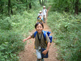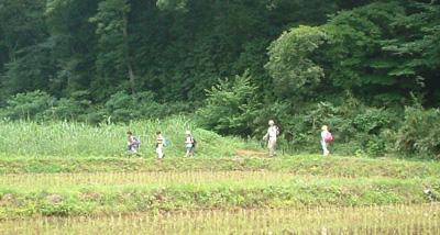 森について学ぶ?まずは森を見て、さわって、感じてから。地図とカメラとリュックを持って出発です。方向音痴のナビゲーターがいると、子ども達の地図の見方が上達します。映画「となりのトトロ」に出てくる景色は見つけられたでしょうか。 |
