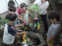 短冊に願いごとを書いて、七夕明けに燃やして天に昇らせました。“七夕の願い事”というよりも“サンタさんへの願い事”になっている人が何人かいましたが‥。みんなの願いごと叶うといいね。 |
